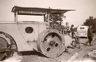 Nach dem Gründungsjahr 1933 wurde Ende der 40er Jahre die erste Walze in der Region erworben. Zu weit entfernten Baustellen war es eine Tagesreise. Um auch andere Maschinen zu den einzelnen Baustellen zu verbringen, wurde die Walze gleichzeitig auch als Zugfahrzeug benötigt.