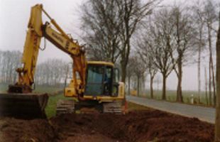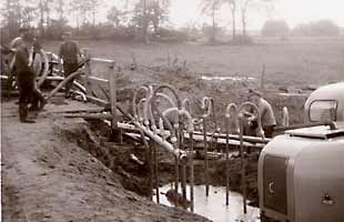 Rohrverlegungsarbeiten zur Absenkung des Grundwasserspiegels Anfang der 60er Jahre in Zeven. Auch ist die Firma Kriete im Bereich anderer Erdbauarbeiten zunehmend aktiver geworden. Hierfür wurde bereits größere Technik zum Einsatz gebracht – beispielsweise Bagger und Raupe.